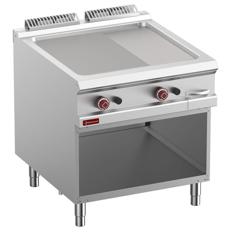 Gas Bakplaat 2/3 Vlak, 1/3 Geribd, Module 1/1, op Open Kast