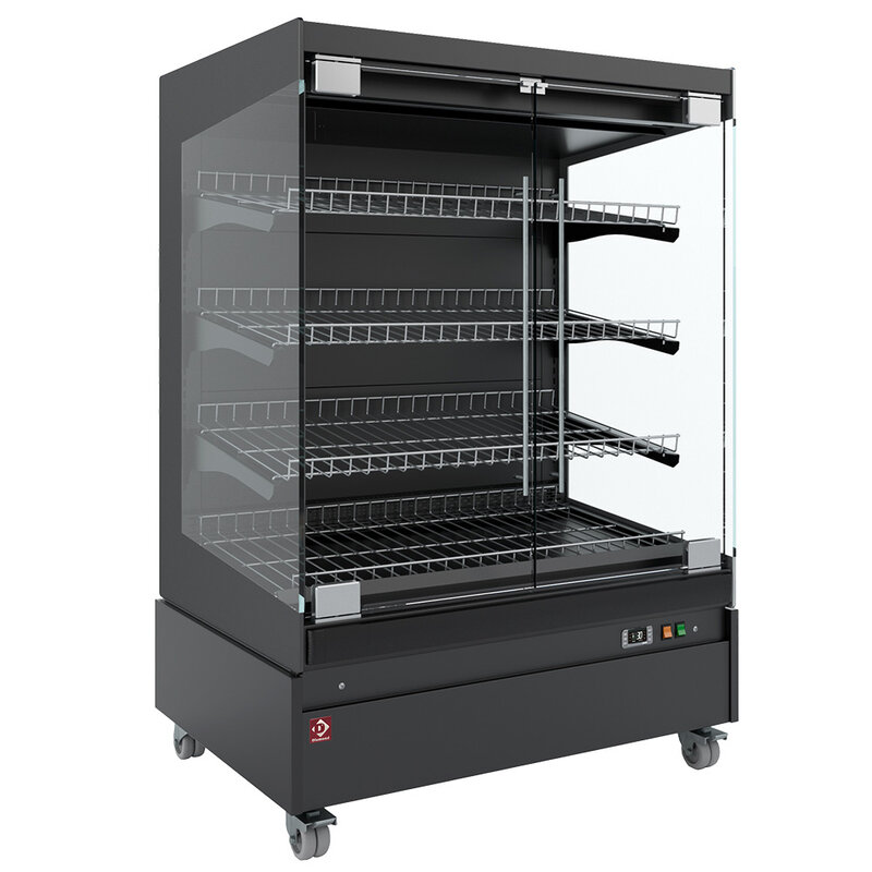 Warmte Vitrine, Zelfbediening, Met Glazen Deur, op Wielen - Full Black