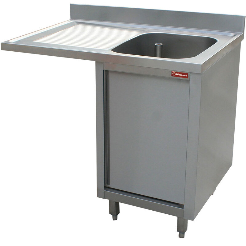 Spoeltafel Met 1 Kuip, Druipvlak Links, op Kast Met 1 Draaideur en Ruimte Voor Vaatwas