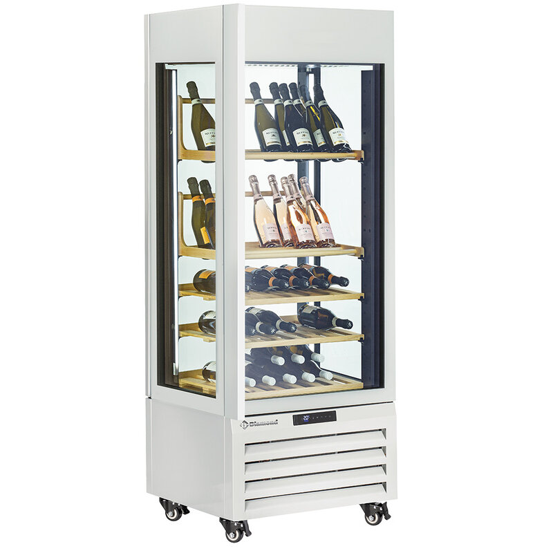 Full Glazen Vitrine" 440 Liter, 1 Niveau + 4 Planken, Geventileerd - Wine - Wit