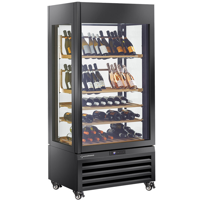 Full Glazen Vitrine" 600 Liter, 1 Niveau + 4 Planken, Geventileerd - Wine - Zwart