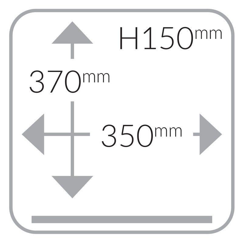 - Afmetingen van de kamer: 370x350xh150 mm (Lasslengte: 345mm).