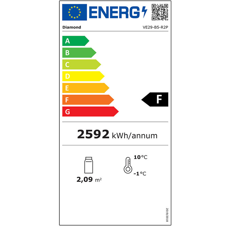 - Automatische ontdooiing. Statische verdamper, behandeld tegen voedingszuren.