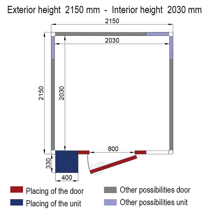 - Vrije deuropening 800 xh 1900 mm (plaatsing van de deur naar keuze, op alle 4 zijden).