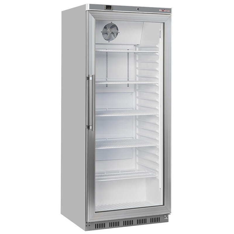 Koelkast GN 2/1, Glazen Deur, Geventileerd, 600 Liter. R.v.s.