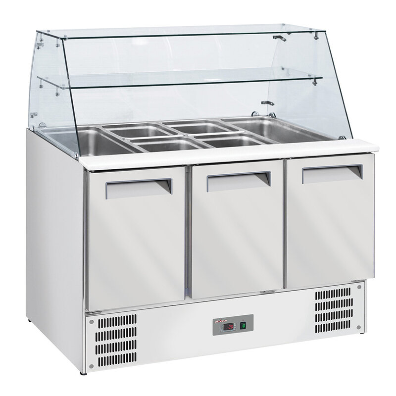 Gekoelde Saladette Met Gebogen Glas 4x Gn1/1-150 mm + Reserve 3 Deuren GN 1/1