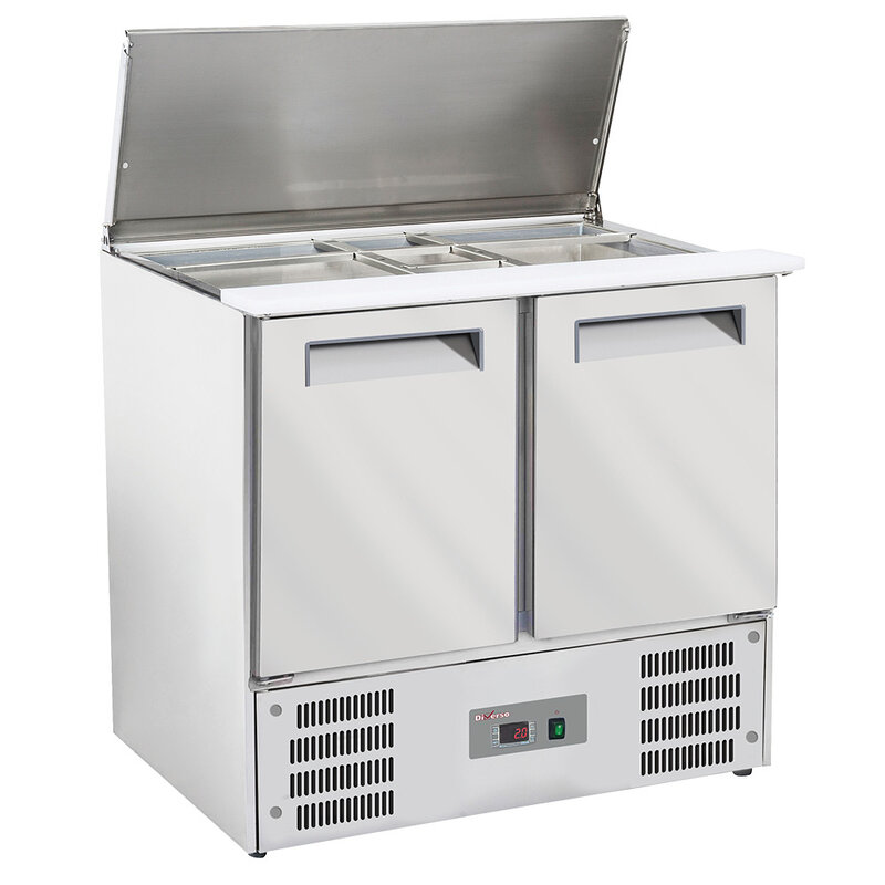 - DiVerso-tafels zijn "milieuvriendelijk" met ecologische koelmiddelen R600a of R290. Laag energieverbruik, nog efficiëntere koelcomponenten, elektronische regelaar. Speciaal ontworpen voor instellingen waar ruimte een belangrijke zorg is. 4 verstelbare poten met ingebouwde wielen... Onverslaanbare prijs-kwaliteitverhouding!