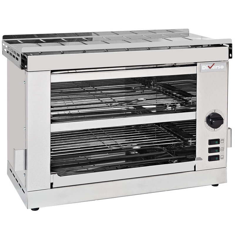Al onze Diverso Toasters-salamander Made in Europe zijn verkrijgbaar in 1 of 2 verdiepingen, ... ... Gekenmerkt door hun zeer robuust ontwerp en hoge prestaties, uniforme bereiding over het volledige oppervlak. De ideale uitrusting om je broodjes te bereiden met kaas, croque-monsieur, pizza's, quiches, croissants en zelfs voor het gratineren van je gerechten of uiensoep, enz ...