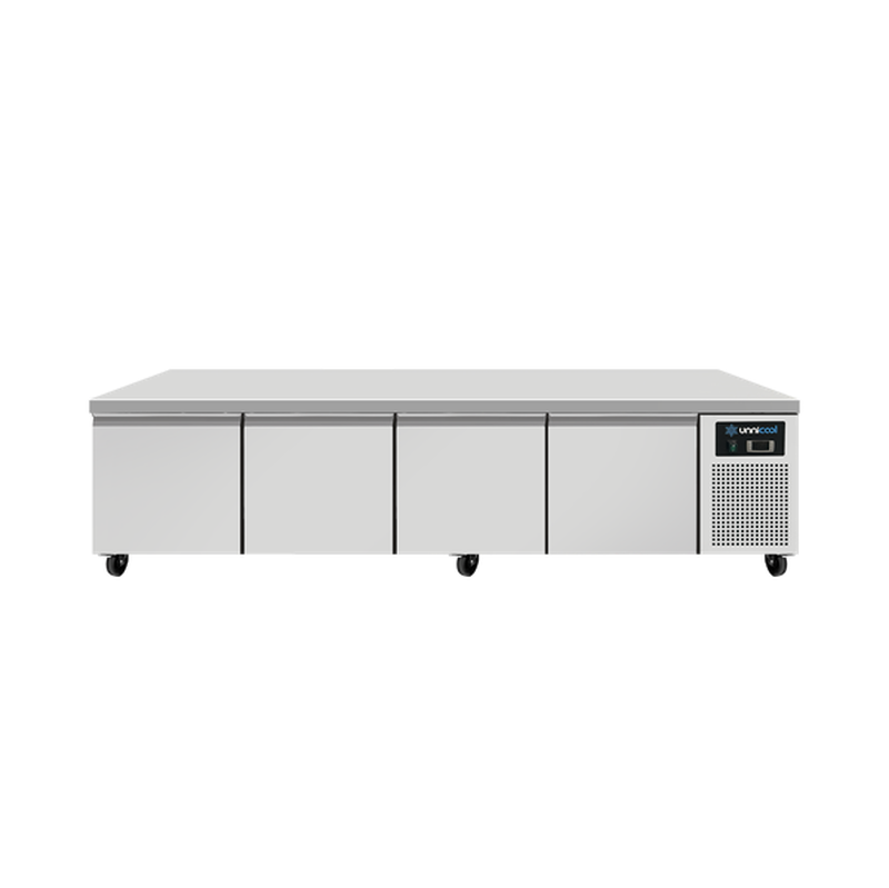 Gekoelde toonbank - Laag model met 4 lades (1/1 GN), geforceerde luchtkoeling Deze professionele lage gekoelde toonbank beschikt over 4 lades compatibel met 1/1 GN-containers, waardoor eenvoudige toegang tot gekoelde producten mogelijk is, zelfs in compacte keukenopstellingen. Ontworpen voor intensief dagelijks gebruik, inclusief hoogwaardige ladescharnieren voor soepele en duurzame werking. De unit biedt geforceerde luchtkoeling voor gelijkmatige temperatuurverdeling, met automatisch ontdooien en digitale bediening voor nauwkeurige temperatuurregeling.