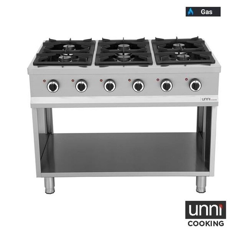 De UnniCooking OCK-6 gasfornuis is een professionele keuze voor elke horecakeuken, uitgerust met geüpgrade Italiaanse branders voor maximale efficiëntie en prestaties. Elke brander levert een indrukwekkend vermogen van 6,5 kW door middel van dubbele overlappende vlammen, wat zorgt voor intense en geconcentreerde hitte. Dit maakt het fornuis bijzonder geschikt voor uiteenlopende kooktechnieken, van grillen en sudderen tot sauteren. De verticale branders zijn ontworpen voor hoog vermogen bij een laag gasverbruik, wat bijdraagt aan een kostenefficiënte bedrijfsvoering. Dankbaar is de geïntegreerde waakvlam, die zorgt voor een betrouwbare en efficiënte ontsteking. Bovendien zijn de geëmailleerde opvangschotels eenvoudig schoon te maken, wat de hygiëne en het onderhoud ten goede komt. Met deze verbeterde branders biedt de OCK-6 niet alleen snellere en preciezere kookresultaten, maar creëert het ook een esthetisch aantrekkelijk visueel effect in de keuken. UnniCooking combineert op deze manier kracht, snelheid en precisie in een duurzame en gebruiksvriendelijke uitvoering.