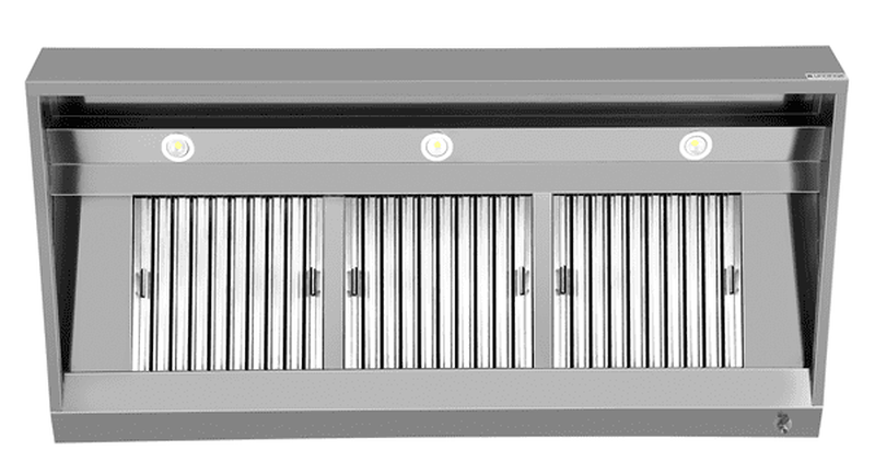 De B2000xD950xH400 is een professionele wandmontage afzuigkap, ontworpen voor efficiënte damp- en geurafvoer in commerciële keukens. Met zijn