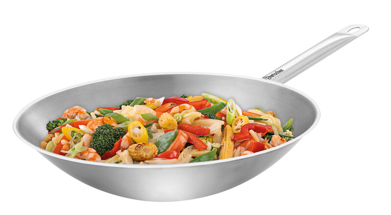 De veelzijdige wokpan met vlak opstelvlak voor professionele keukens: geschikt voor diverse kookplaten, ideaal om te braden, stomen, frituren en roosten - de oplossing voor zeer hoge eisen. Efficiëntie in de bereiding en eersteklas kookkwaliteit overtuigen over de hele lijn.