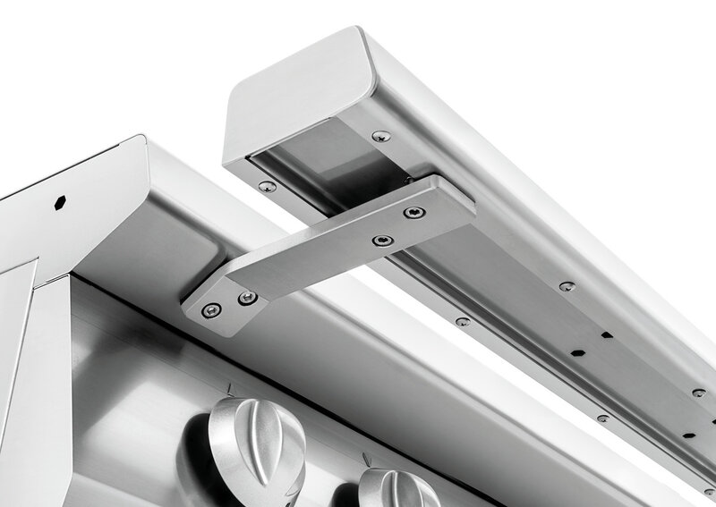 De apparaten van de serie 700 voorzien van een keukenreling biedt niet alleen een stijlvolle aanvulling, maar optimaliseert ook de veiligheid en functionaliteit. Door de vergrote afstand tot het apparaat wordt het verbrandingsgevaar aan de zones met hoge temperaturen verkleind. Daarnaast maakt de robuuste constructie een comfortabele tijdelijke opslag van potten, pannen en borden mogelijk.