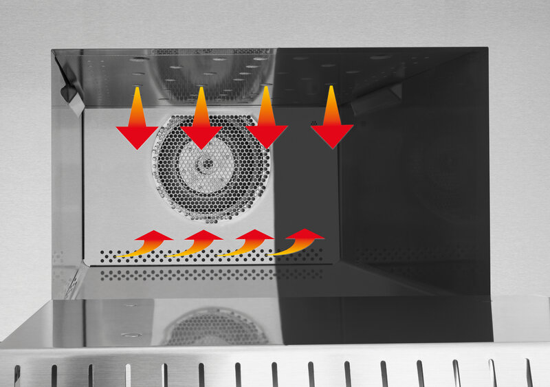 Instelmogelijkheden: Ventilatortoerental ,Magnetronintensiteit ,Temperatuur ,Tijd