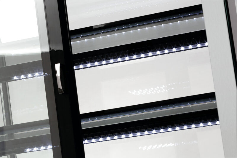 De flexibele, koelvitrine voor het goederenuitgavebereik - De in hoogte verstelbare tussenschappen met prijsrails bieden representatieve opstelvlakken voor gekoelde dranken, snacks en etenswaren.