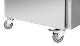 De gastronorm-koelkast met 4 zwenkwielen is bijzonder ruimtebesparend door inbrengen in de lengte. In de in hoogte verstelbare invoeren vinden voorbereide GN-reservoirs in 1/1 en 1/2 GN hun plaats.