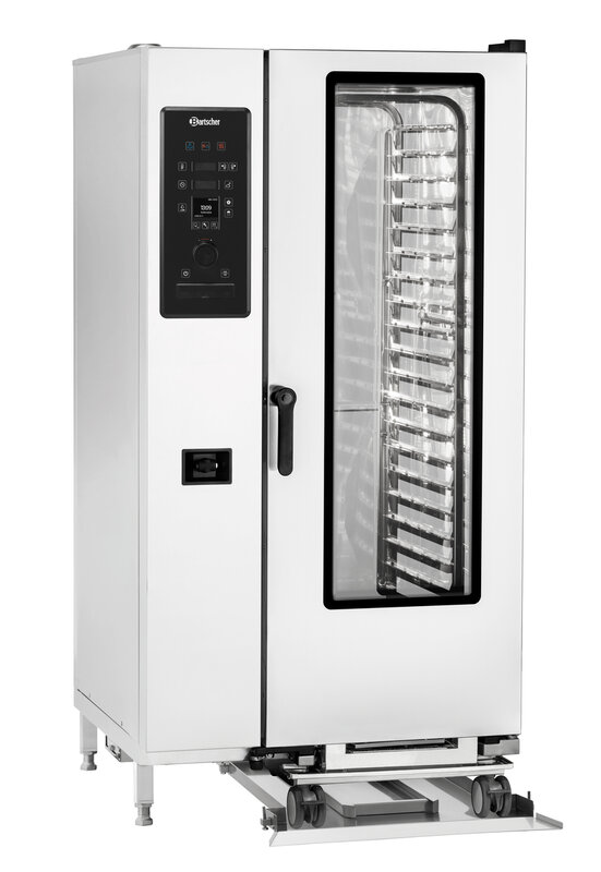 Met de beide geleiderails vergemakkelijkt de inschuifbaan het in- en uitschuiven van trolleys of bordenwagens. Bovendien zorgt hij voor meer stabiliteit - ook bij oneffen vloeroppervlakken. Met de stevige roestvrij stalen constructie is de onder de combistomer Gigasteam gemonteerde inschuifbaan bestand tegen een belasting van max. 130 kg.