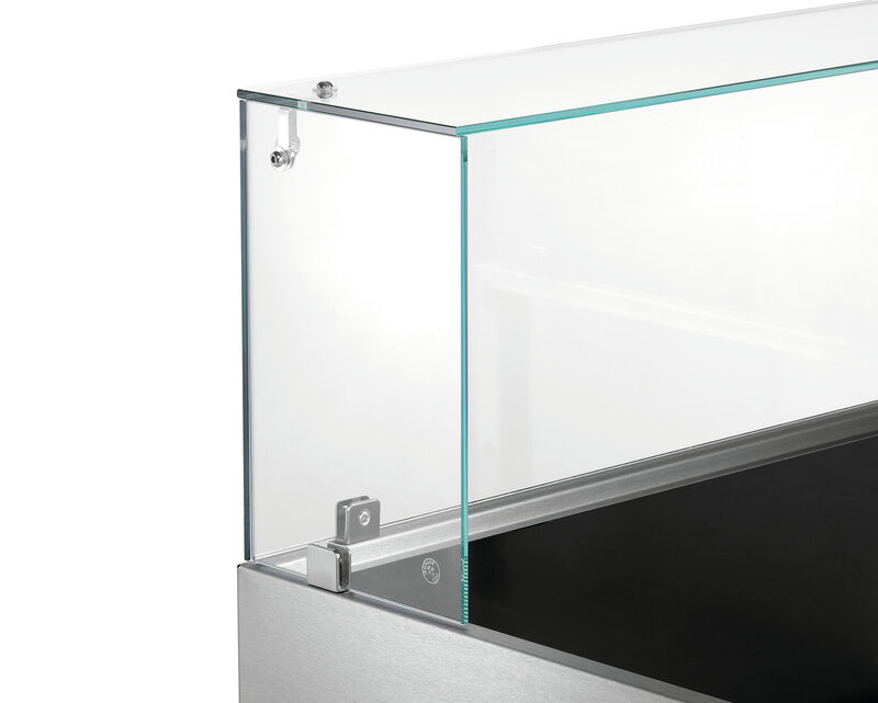 De verkorte zijdelingse glasplaat maakt bij een verbinding van 2 buffetten Snackpoint 200 een vlot werkverloop aan de apparaten mogelijk.