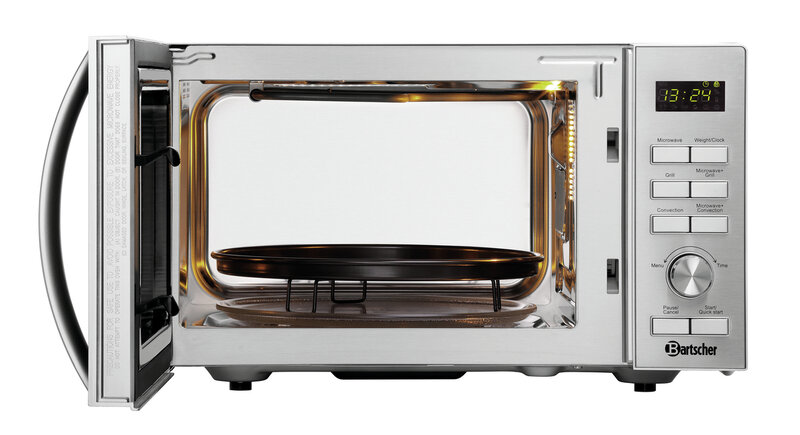 Met de extra warme lucht- en grillfunctie biedt de magnetron een groot spectrum voor het type voedselbereiding. Tijd en vermogen kunnen heel individueel naar behoefte overeenkomstig de functie worden ingesteld.