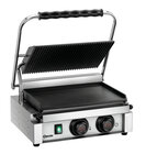 De contactgrill "Panini-MDI" met geribbelde grillplaat boven en onder glad biedt alles, wat een goede contactgrill nodig heeft. Grillplaten met optimale warmtegeleidbaarheid, een robuuste bouwwijze en een eenvoudige en intuïtieve knevelbediening met digitale aanduiding, timer en signaaltoon.
