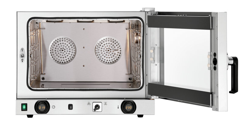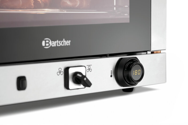 De AT230-MDI vergemakkelijkt het vullen van de bakkamer dankzij de zijdelingse deuraanslag. Door het verenigen van de beproefde AT-features met de extra grillfunctie en bevochtiging, blijven hier geen wensen over. Voor het hoogste bedieningscomfort zorgt de digitale Bartscher MDI-besturing met een snelle en ongecompliceerde regeling van temperatuur en tijd.