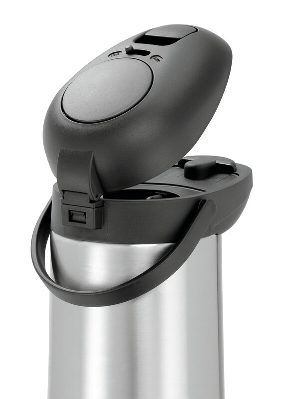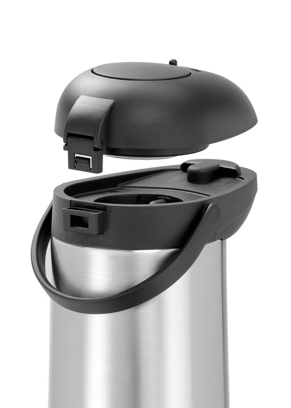 Eigenschappen: Bodem met ingebouwde ring voor een 360°-draaiing van de kan ,Vergrendelingssysteem ,Deksel met uitgietmechanisme ,Pompkop geheel afneembaar ,Eenvoudige reiniging
