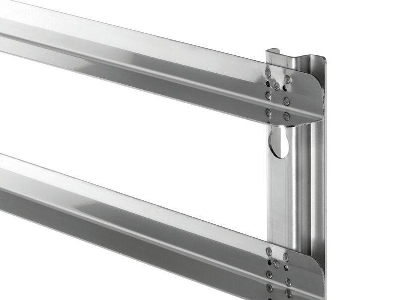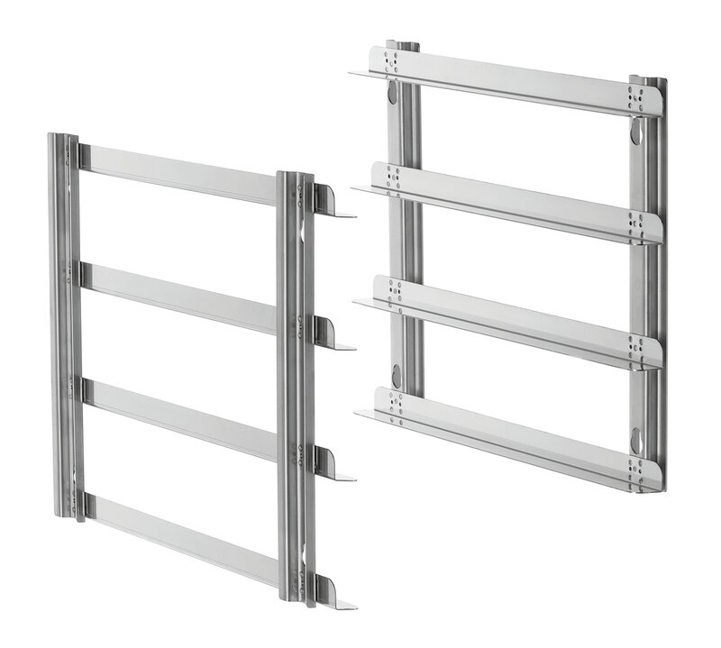 1 paar steunrails voor roosters en platen met bakkerijnorm-formaat 600 x 400 mm. De perfecte aanvulling voor de combisteamers 5 x 1/1 GN uit de Silverstream-serie.