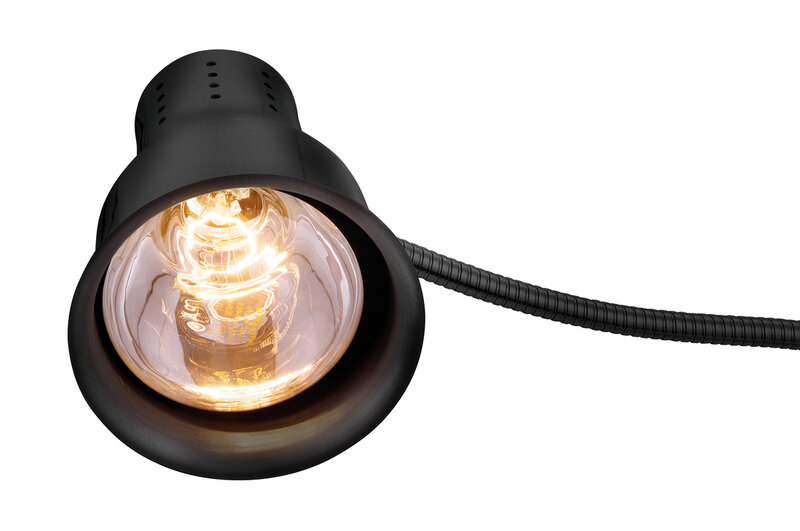 De warmtelamp in elegant zwart houdt voedsel betrouwbaar warm met infraroodwarmte. Dankzij de flexibele lamparm is het de perfecte keukenhulp - bij het bereiden, serveren van eten of bij het buffet.
