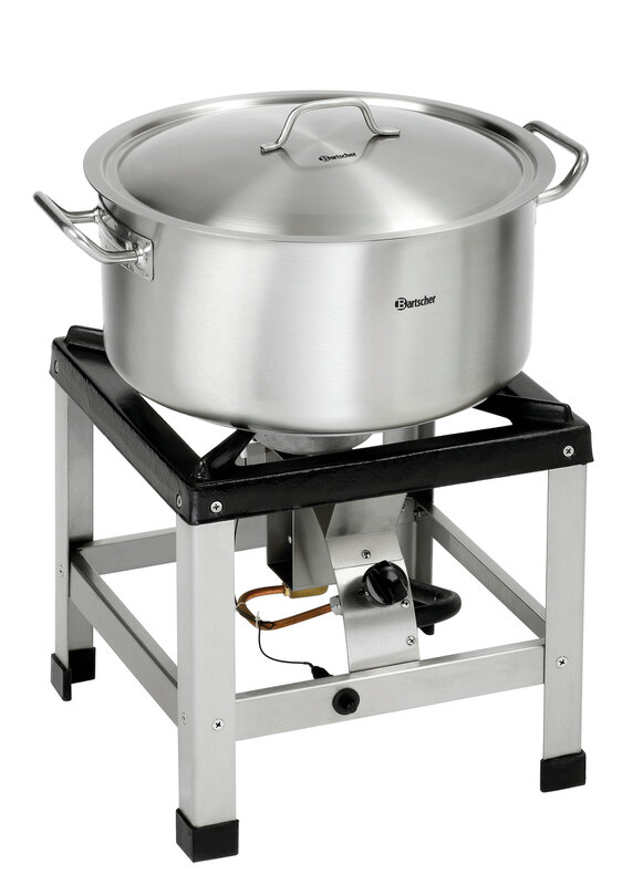 De kookpan met extra grote inhoud en warmte-isolerende grepen is geschikt voor alle soorten kooktoestellen.