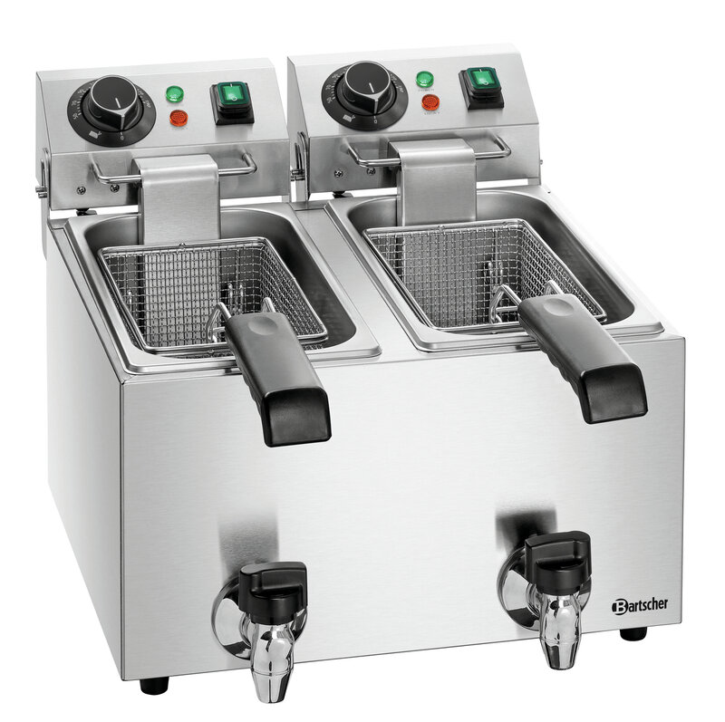 De dubbele friteuse bereidt snel en betrouwbaar de meest uiteenlopende snacks. Dankzij de praktische vetaftapkraan en het zwenkbare verwarmingselement is ook de daaropvolgende reiniging snel gedaan.