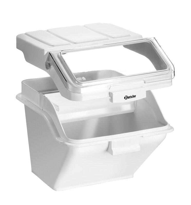 Robuuste, stapelbare voorraadcontainer voor een hygiënische bevoorrading van verschillende graansoorten en van specerijen, rijst of noedels. Het praktische transparante klapdeksel maakt een snel overzicht mogelijk van welke droge goederen zich in de container bevinden.
