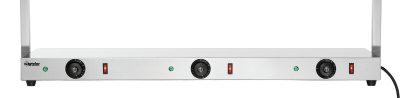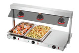 Voor GN-bakken bij het buffet voor orden bij de voedseluitgifte - Met de warmtebrug blijft voedsel steeds perfect op temperatuur. Want de warmte wordt van boven via 3 infrarode warmtelampen en van onder via de roestvrijstalen warmhoudplaat afgegeven aan het voedsel.