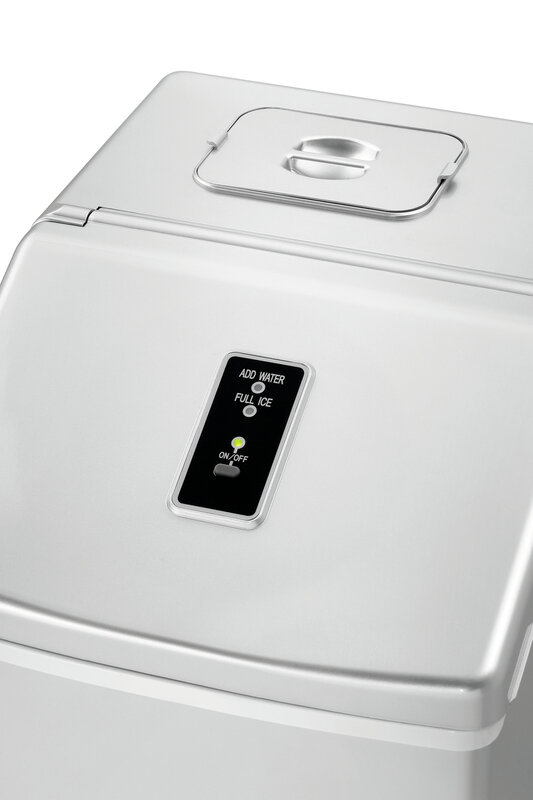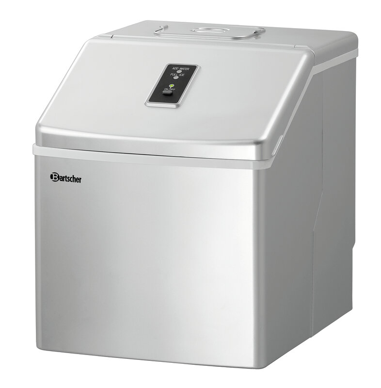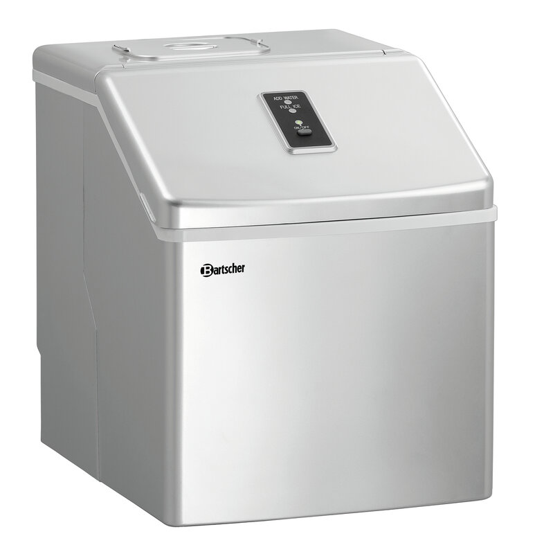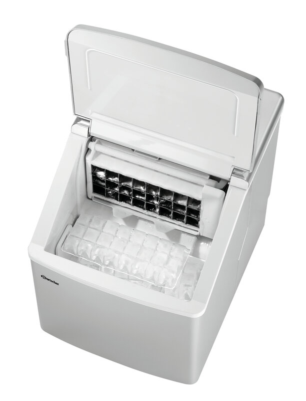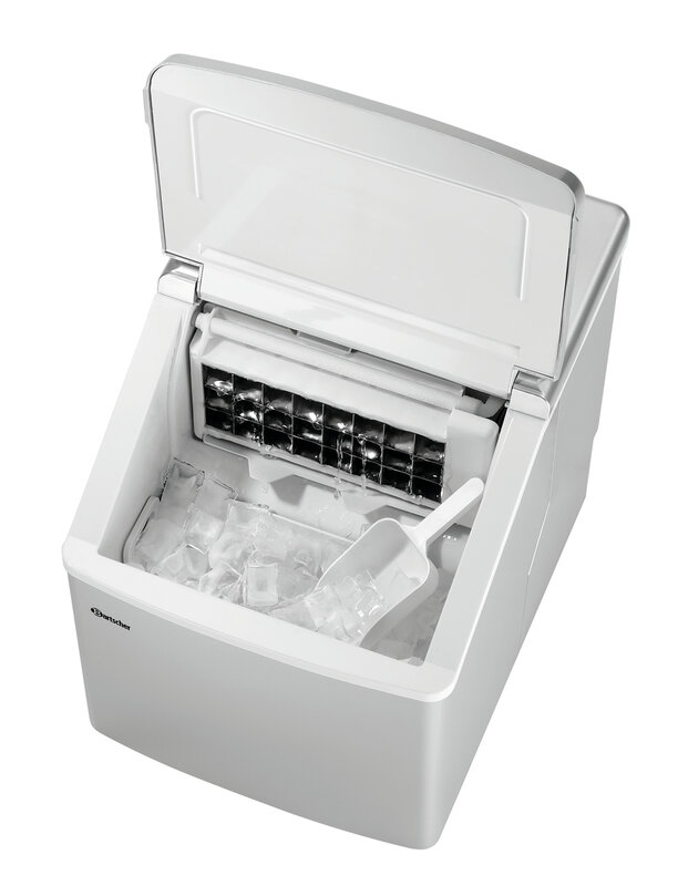 Compact apparaat voor de productie van heldere ijsblokjes. Bijzonder geschikt voor de kleine catering, bijv. bij de bar alsook voor particulier gebruik.