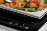 Als tafel- of als inbouwapparaat: de warmhoudplaat is ook vanwege het elegante zwarte design, uitstekend geschikt voor buffetten, de voedseluitgifte en front-cooking. De keuze van 3 temperatuurniveaus gebeurt via een eenvoudige bediening via touchcontrol.