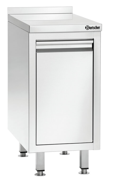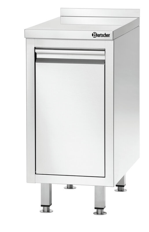 Afvalemmer kast uit de Bartscher-rvs-meubel-serie De uitneembare binnenbak maakt gemakkelijk legen en reinigen mogelijk.