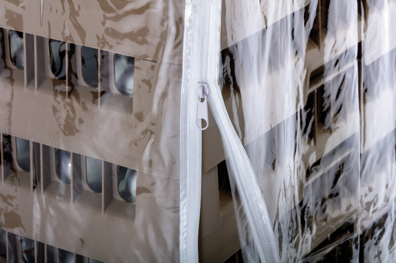 De bij de afruimwagen TGS100 passende transparante afdekhoes beschermt bij transport en opslag tegen stof en onzuiverheden - zelfs in koelruimten.