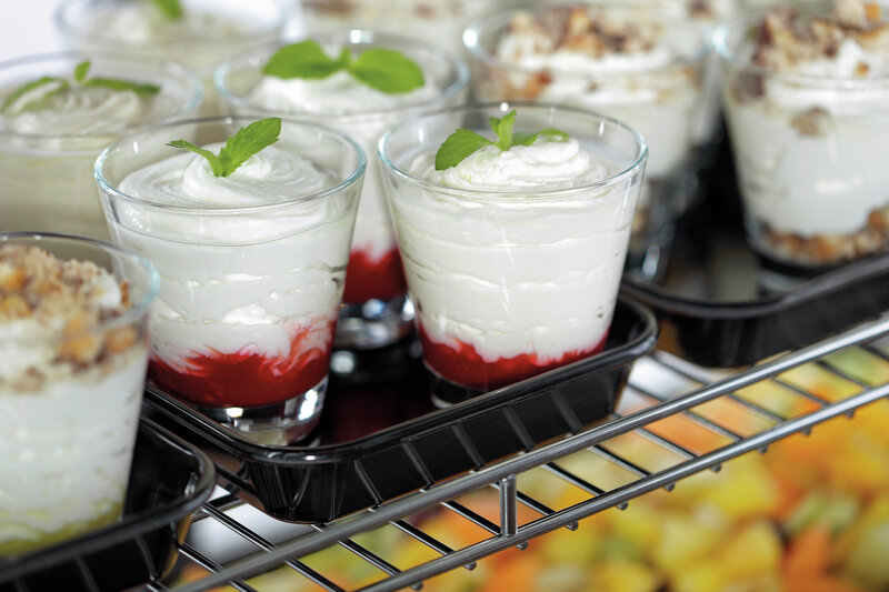 Gerechten en levensmiddelen aantrekkelijk in de schaal presenteren. De kwalitatief hoogwaardige schalen van melamine kunnen op verschillende manieren worden gevuld en het hebben een aantrekkelijk ontwerp.