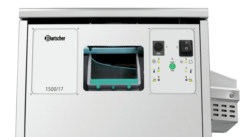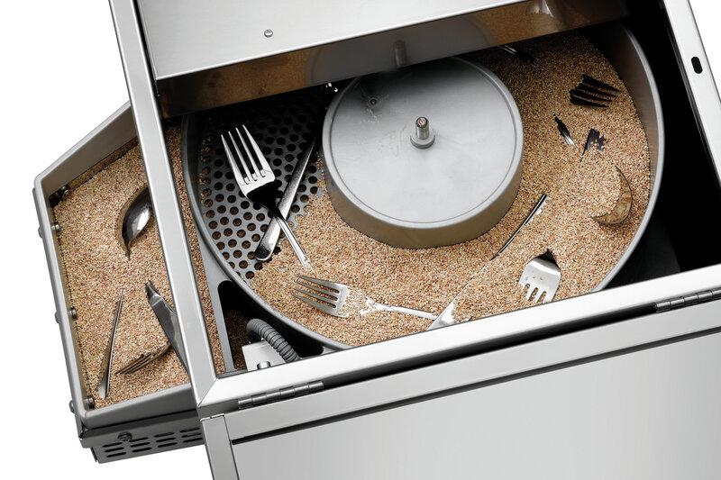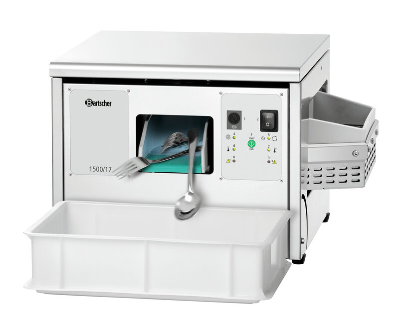Eigenschappen: Automatische uitschakeling bij het openen van de afdekking ,HACCP-conform door 80 °C bedrijfstemperatuur ,Na uitschakeling 10 minuten naloop voor het drogen van granulaat ,Eenvoudige toegang tot het bestekkanaal ,Start/stop-knop