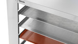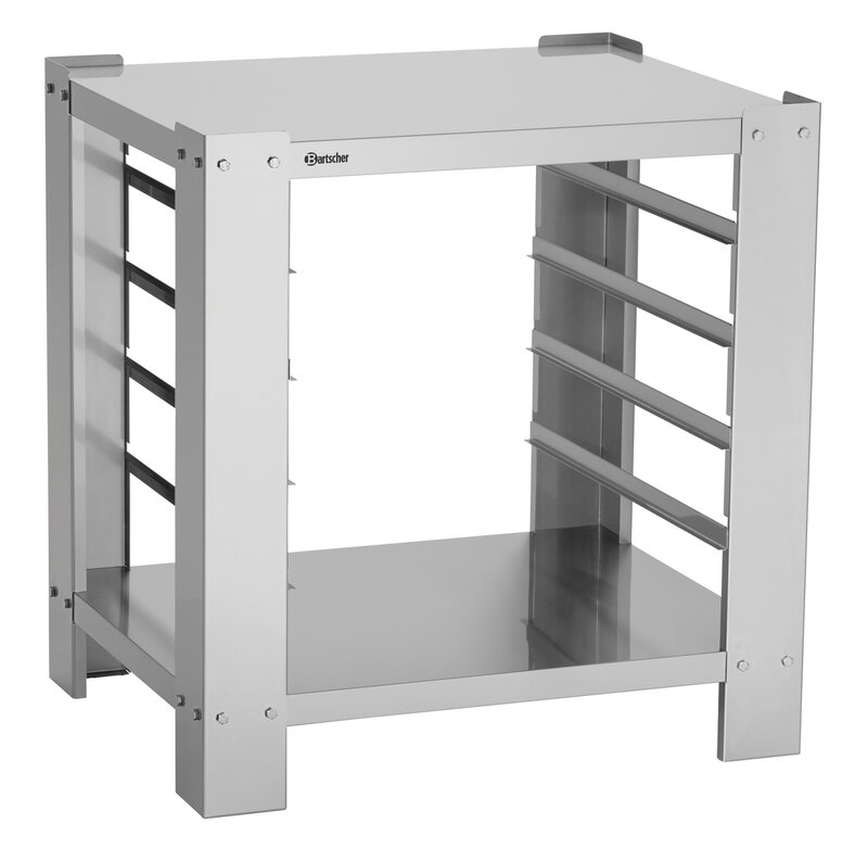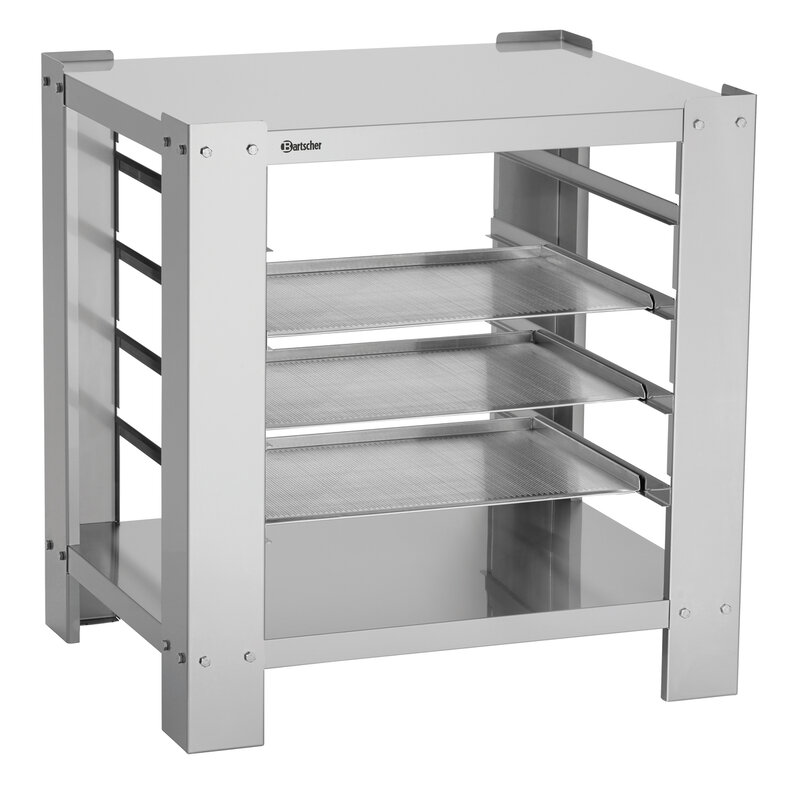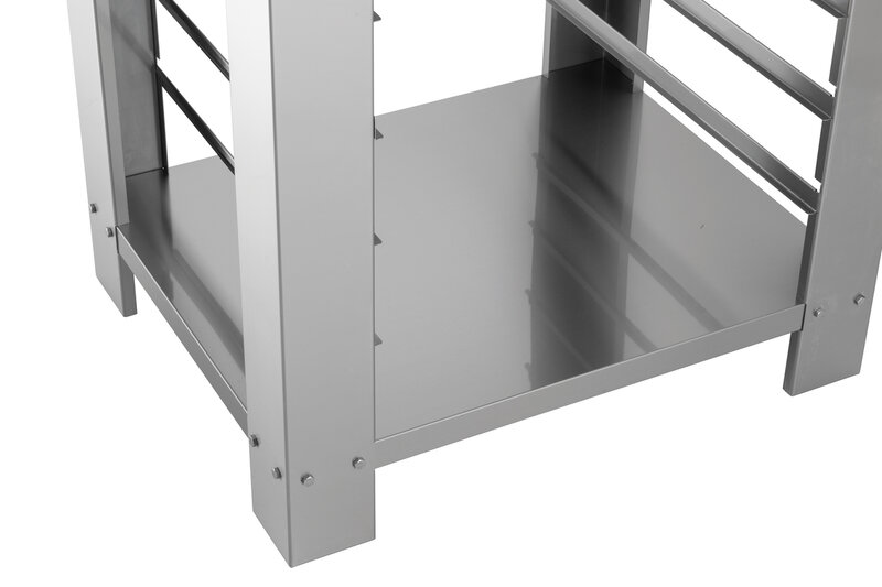Onderstel voor optimale werkomstandigheden: Met het speciaal voor de AT400 en AT400-MDI heteluchtovens ontwikkelde onderstel kunt u de ideale werkhoogte bereiken. De 4 trays in Bakkerijnorm 600 x 400 mm bieden voldoende ruimte voor trays.