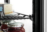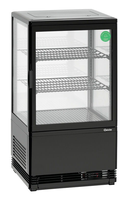 De compacte, koelvitrine in zwarte uitvoering met een inhoud van 58 liter overtuigt met zijn milieuvriendelijke koelvloeistof en de duurzame, krachtige uitvoering.