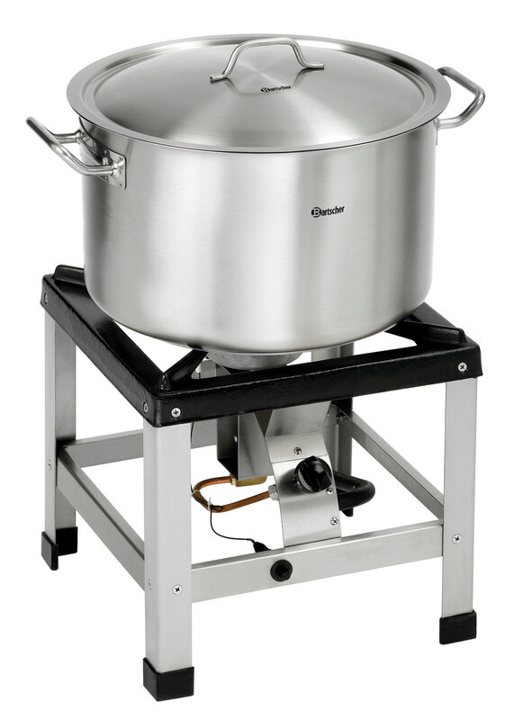 De kookpan met extra grote inhoud en warmte-isolerende grepen is geschikt voor alle soorten kooktoestellen.