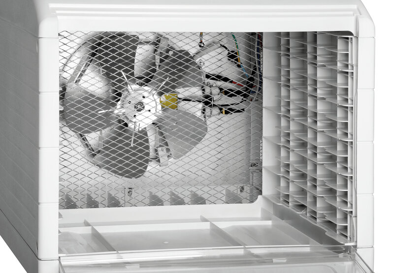 Eigenschappen: Geluidsarm ,Gelijkmatige luchtcirculatie ,Transparante, inschuifbare deur