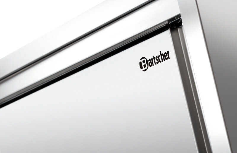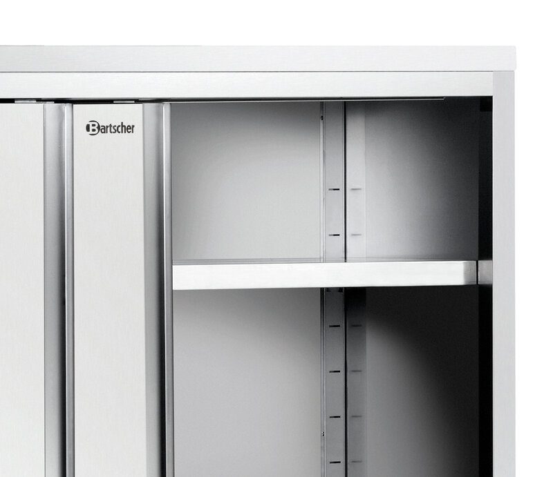 Eigenschappen: Voeten van vierkante buis 40 x 40 mm ,Schappen aan elke kant met 40 mm omgevouwen rand en met dwarsbalk verstevigd ,Scotch-Brite-gepolijst
