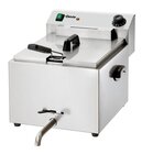 Krachtige tafelfriteuse met royale 11 literbak. Na de productie van knapperig krokante frites en dergelijke wordt de reiniging vergemakkelijkt door het uitneembare verwarmingselement, de afgeronde bak en de afneembare aftapkraan.