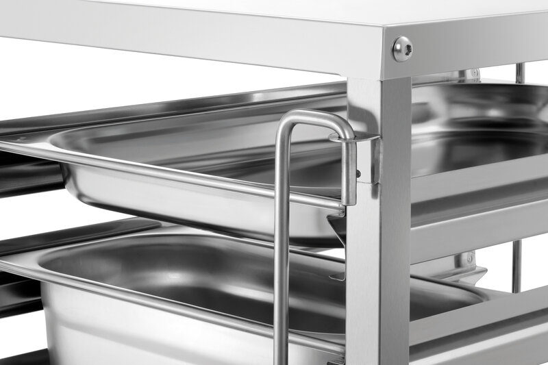 Gestructureerd werken gemakkelijk gemaakt - de legbordwagen met 7 legborden in 1/1 Formaat en extra opbergruimte biedt veel ruimte voor organisatie. De containersluiting aan beide zijden voorkomt op betrouwbare wijze dat de reservoirs wegglijden en zorgt voor een stevige grip tijdens het transport.