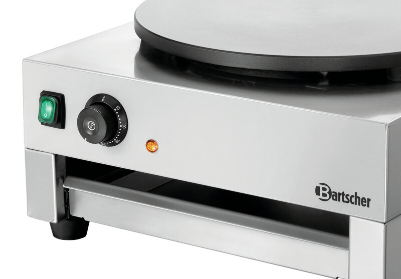 De hoogwaardige crêpe-bakplaat van gietijzer staat voor een goede warmtegeleiding en een robuuste uitvoering. De Aan/Uit-schakelaar maakt een op de behoefte afgestemd en onafhankelijk gebruik van de plaat mogelijk.