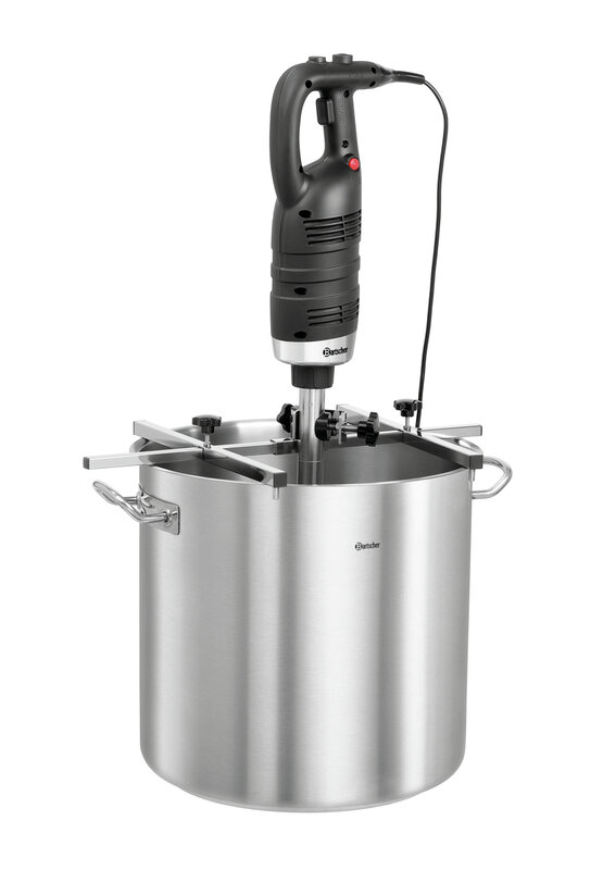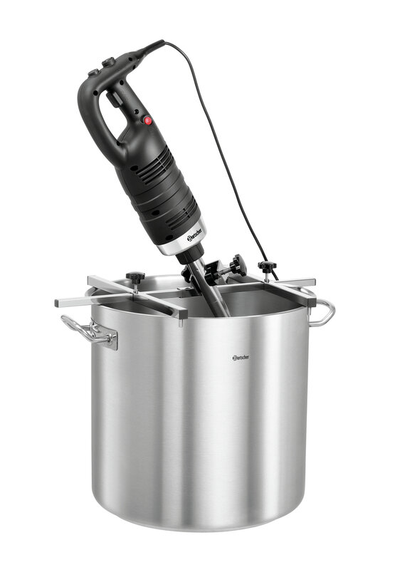 Grote tijdwinst en meer flexibiliteit in de keuken - Met de steun van de staafmixerhouder gaat het werk bijna vanzelf. De staafmixer wordt naar wens in de houder vastgehouden en voedsel kan al roerend worden fijngehakt, gepureerd en verwarmd.