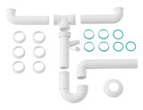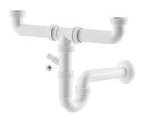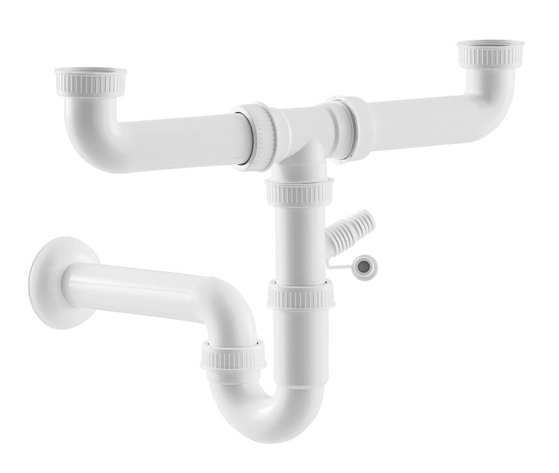 Betrouwbare en geurvoorkomende afvoer voor was- en vuil water met behulp van de sifon voor spoelen en spoelcenter met twee bakken. Dankzij de geïntegreerde apparaataansluiting is voor het gebruik van bijvoorbeeld een vaatwasser geen extra afvoer nodig.