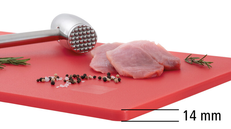 Focus op hygiëne met de snijplanken in Formaat 53 × 32 cm - Snijplanken in verschillende kleuren voor verschillende voedselgroepen. De HACCP-conforme Snijplank in rood - rood vlees zoals rundvlees, varkensvlees of wild - kan aan beide zijden worden gebruikt en maakt indruk door zijn duurzaamheid.