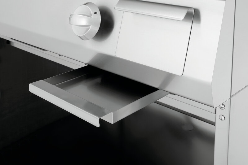 Inclusief: Lavastenen voor eerste vulling (10 kg) ,1 vetopvangbak, uitneembaar ,2 kruimellades, uitneembaar ,Spatrand